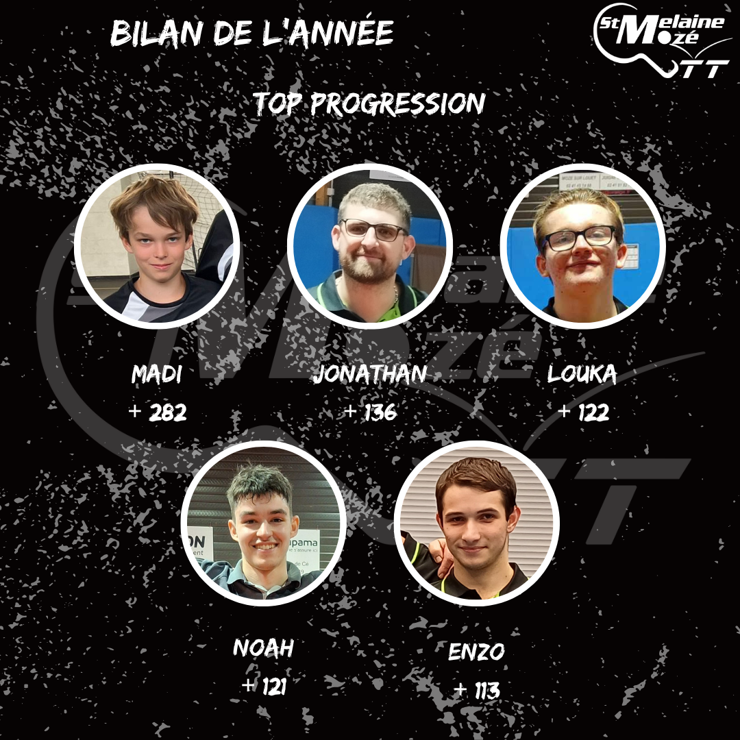 La dérive est tombée, l’heure est venue de faire le bilan des meilleures progressions de l’année au club ! 🏓