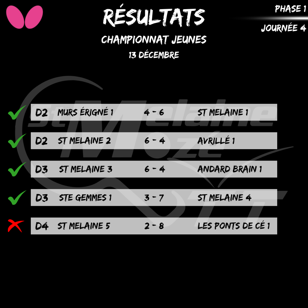 La quatrième journée du championnat jeunes s’est tenue ce week-end, et nos équipes reviennent avec un bilan presque parfait de 4 victoires et 1 défaite.