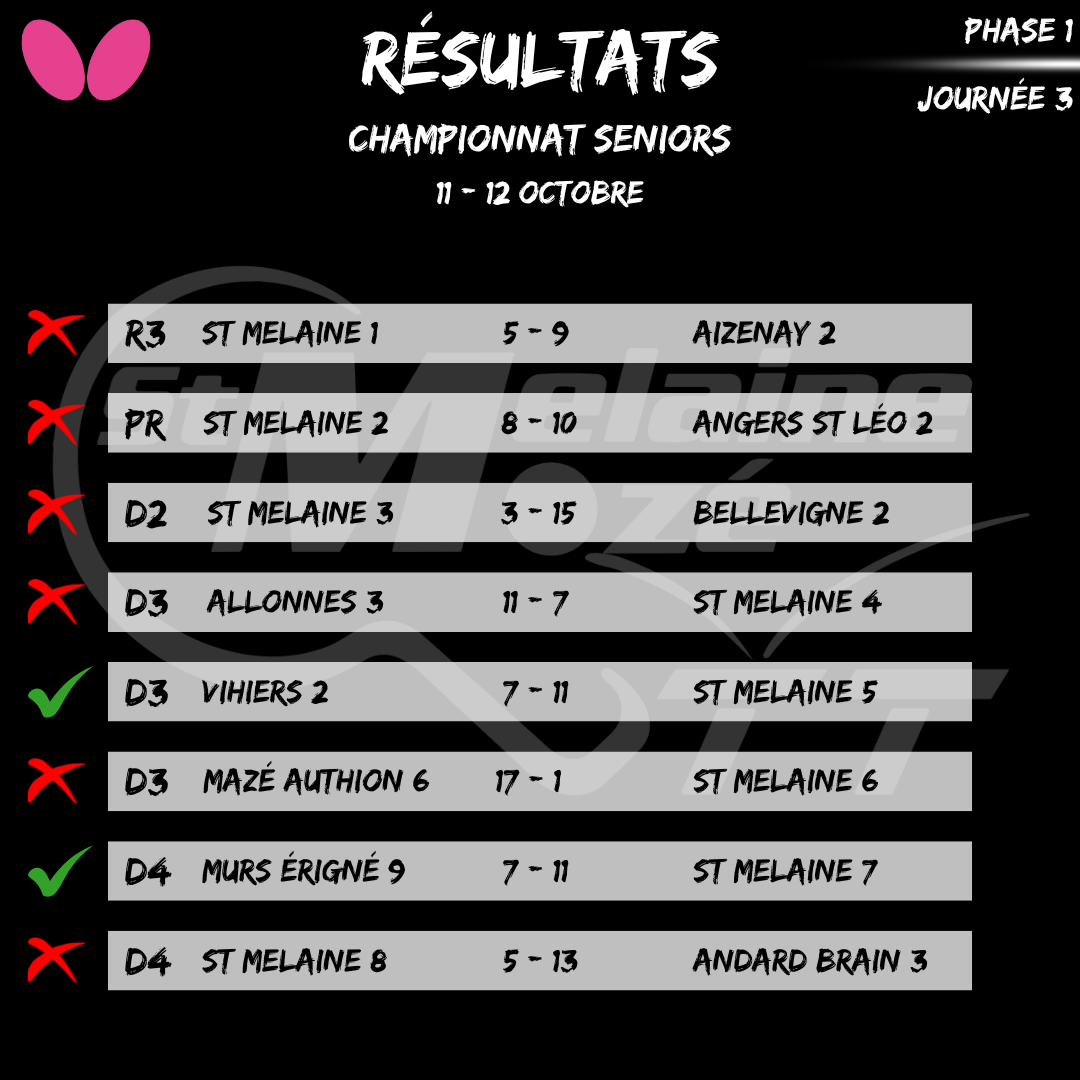 La troisième journée du championnat seniors s'est déroulée ce week-end avec ce bilan : 2 victoires et 6 défaites.