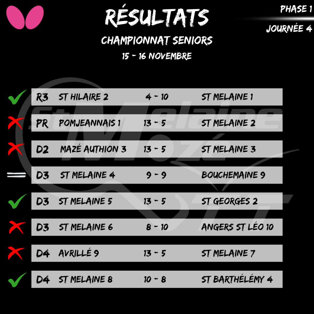 La quatrième journée du championnat seniors s’est jouée ce week-end et se conclut sur un bilan de 3 victoires, 1 nul et 4 défaites.