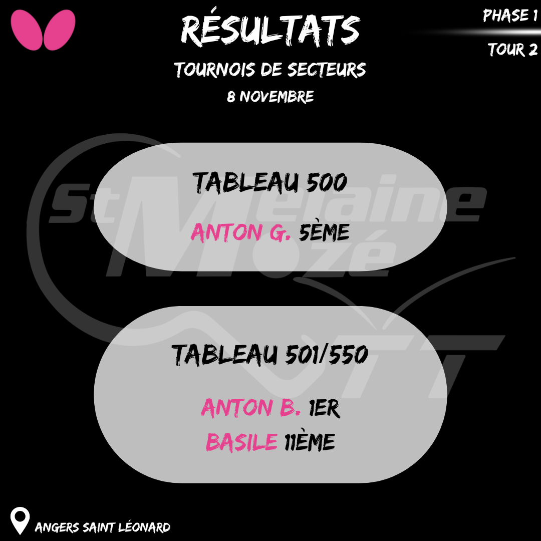 Ce week-end, nos couleurs étaient représentées à Angers lors du deuxième tour des tournois de secteurs ! Voici les résultats de nos licenciés ![]()